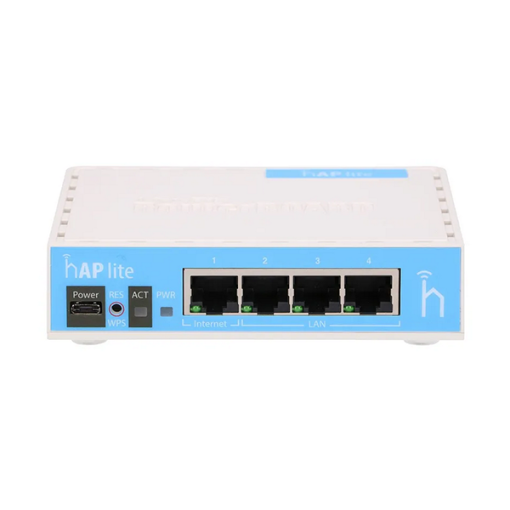 روتر میکروتیک hAP lite RB941-2nD یک روتر وایرلس جمعوجور و قدرتمند با ۴ پورت اترنت 10/100 و سیستمعامل RouterOS Level 4 است که برای شبکههای خانگی و اداری کوچک ایدهآل میباشد.